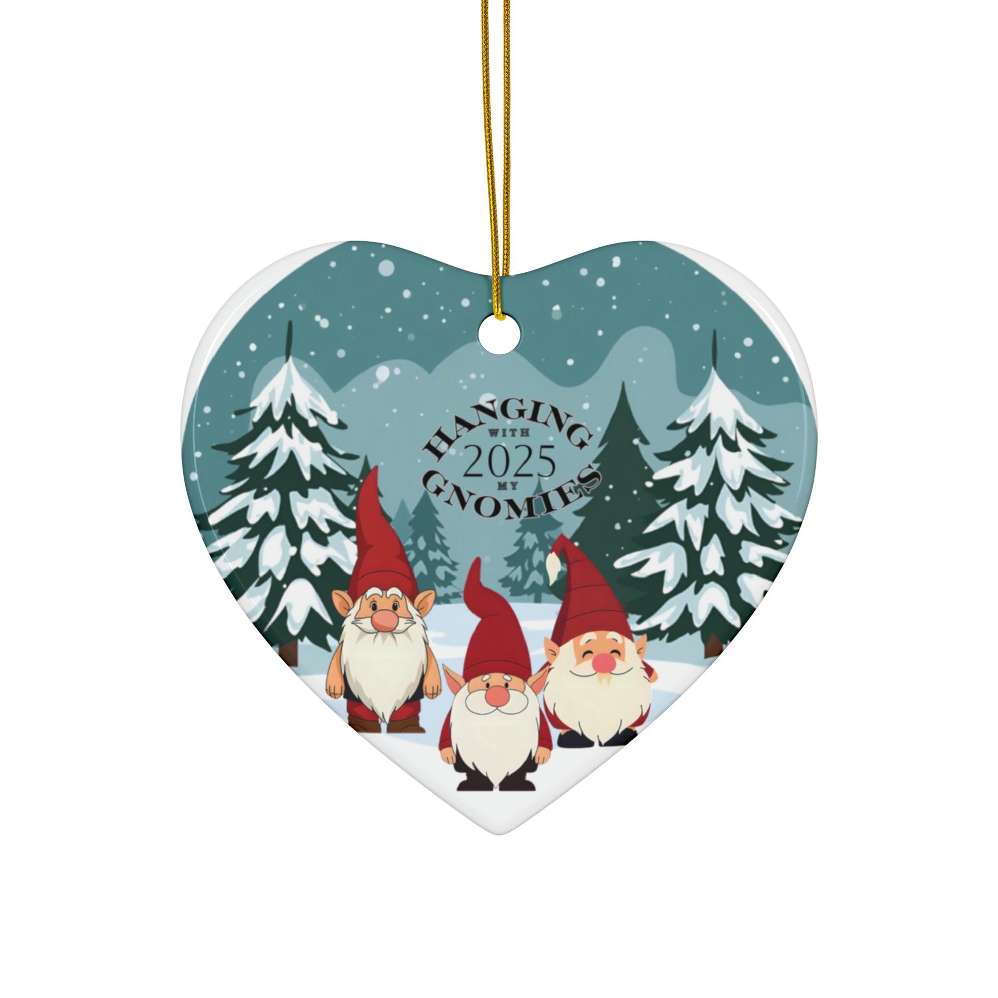 Hanging With My Gnomies 2025 Ceramic Heart Ornament — Cute Gnome Holiday Decoration