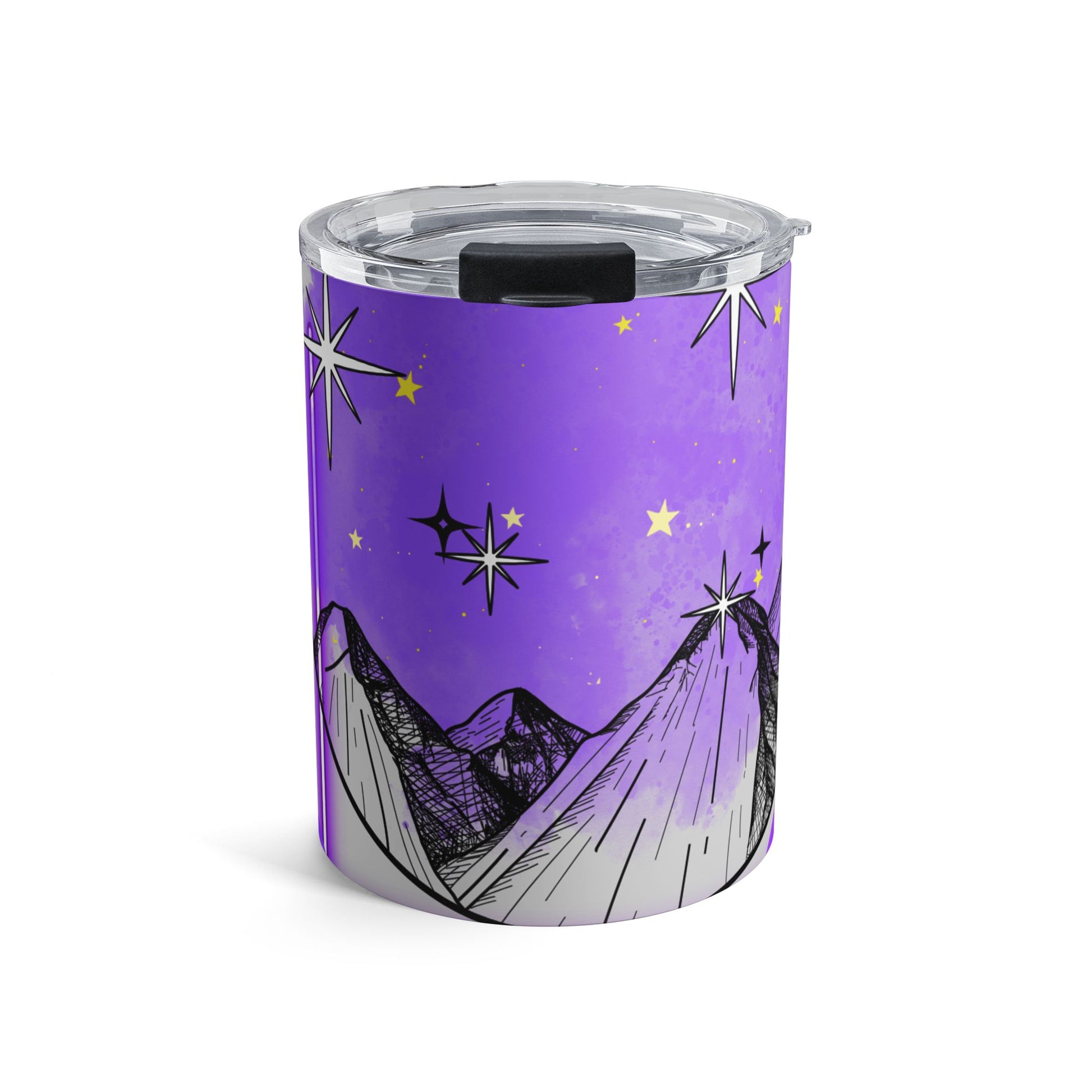 Meet your new sidekick—the Purple Mountain Majesty 10 oz travel mug, a bold ally to the Majesty Line of products, that’s as unapologetically authentic as you. Cloaked in a fierce shade of purple, it’s not just a vessel for your elixirs of choice; it’s a declaration of independence from the mundane.